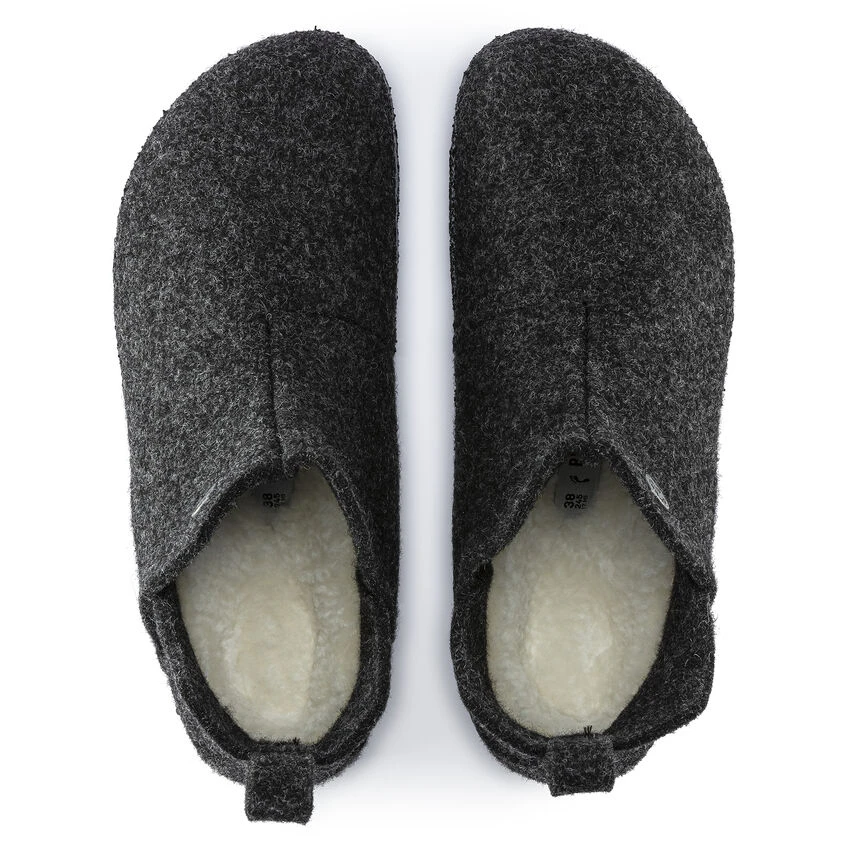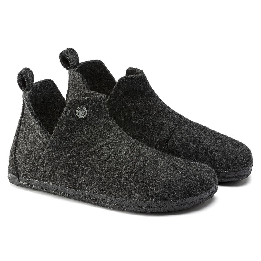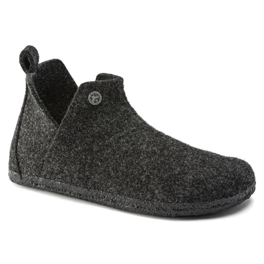 The BIRKENSTOCK Andermatt is the perfect slipper boot. Ankle height and extra cozy, featuring a shearling lined footbed and a pull tab for easy on and off. Stay snug even on chilly evenings. The upper is made from soft wool felt.