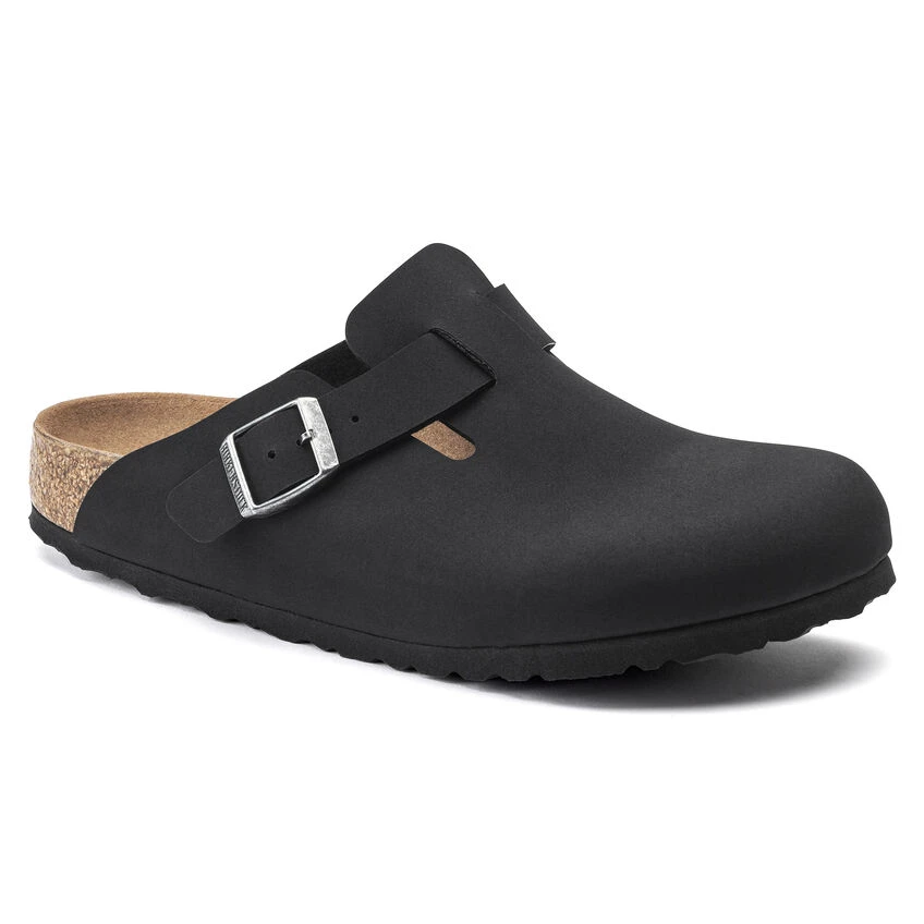 The signature slip-on clog from BIRKENSTOCK – the Boston. A casual-wear staple that is perfect all year round with a simple, adjustable design and contoured cork footbed that forms to the shape of your foot. The color-coordinated outsole rounds off the shoe’s look of sophistication. Available in vegan materials including an upper made from the skin-friendly, hard-wearing synthetic material, Birkibuc.