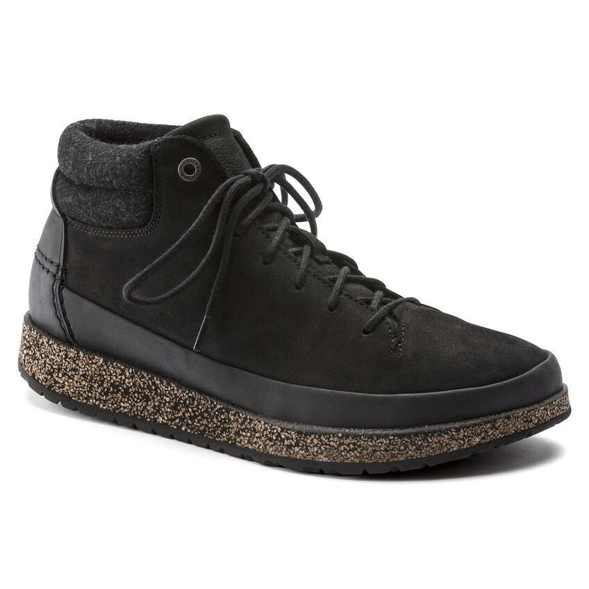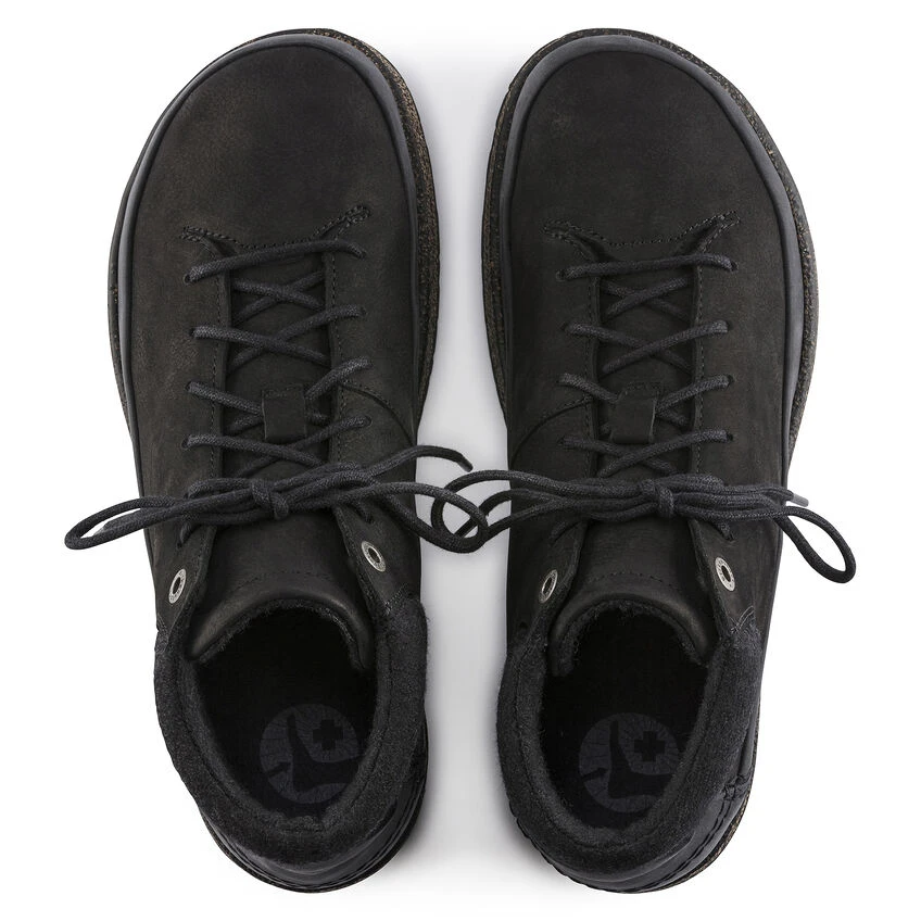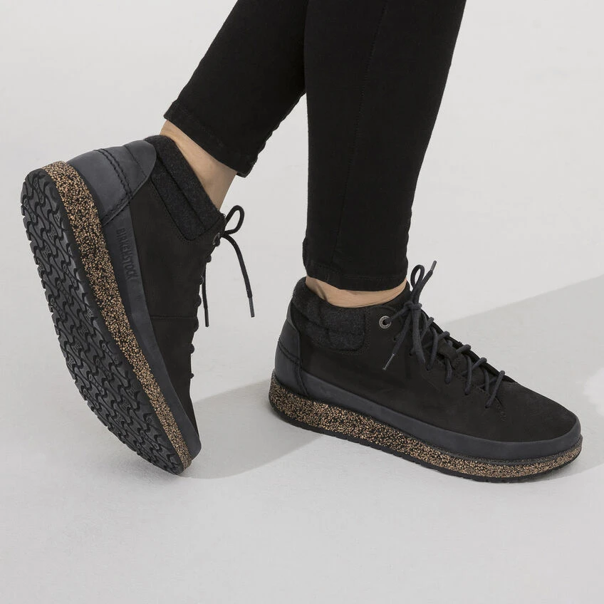 Presenting the BIRKENSTOCK Honnef High – our newest street smart ankle boot engineered completely around our new Deep Blue footbed. The four part footbed includes a moisture wicking microfiber liner, cork and jute layers for optimum arch support and a PU base for added shock absorption and forefoot cushioning. The sporty lace up style is perfect for your most active days, whether thatโs all day around town or on your next travel adventure, The oiled nubuck upper is durable and easy to clean, fully adjustable lacing for optimum fit, wool synthetic lining for internal temperature control and injected rubber outsole for added grip and durability.