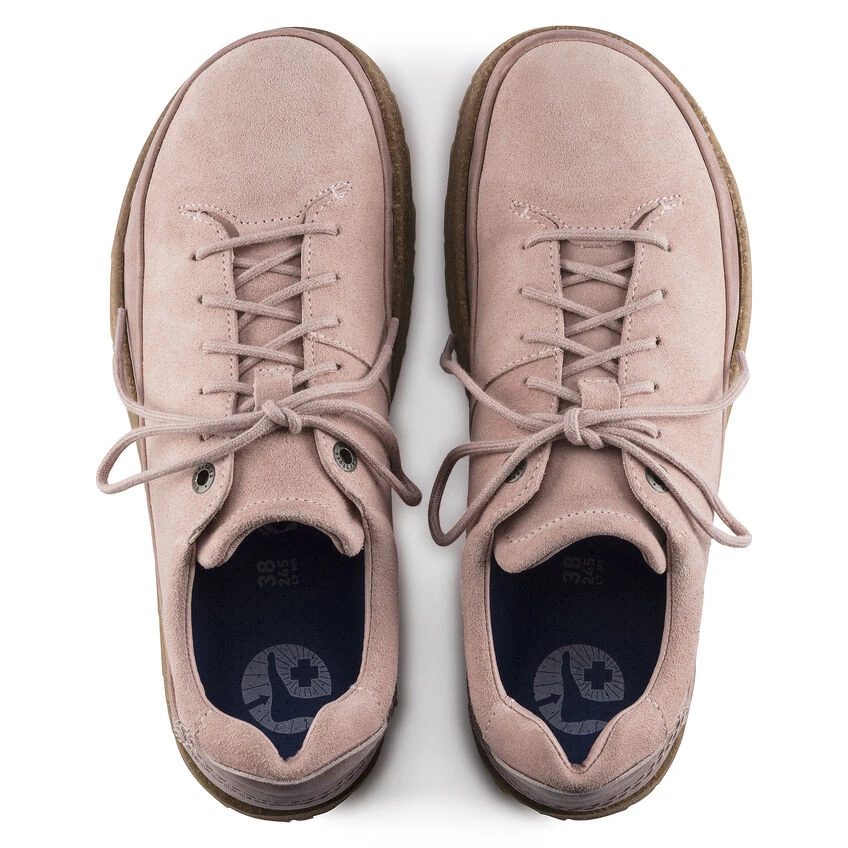 Introducing the BIRKENSTOCK Honnef – our newest street smart shoe engineered completely around our new Deep Blue footbed. The four part footbed includes a moisture wicking microfiber liner, cork and jute layers for optimum arch support and a PU base for added shock absorption and forefoot cushioning. The sporty lace up style is perfect for your most active days whether thatโs all day around town or on your next travel adventure. The soft suede upper is durable and easy to clean, fully adjustable lacing for optimum fit and injected rubber outsole for added grip and durability.