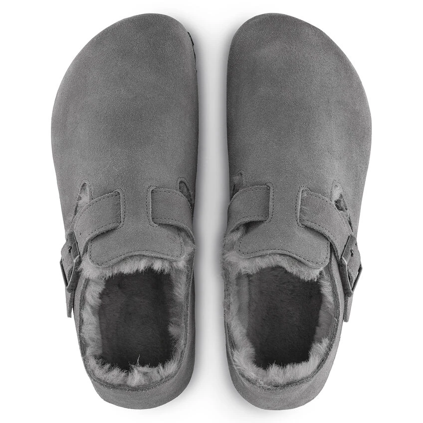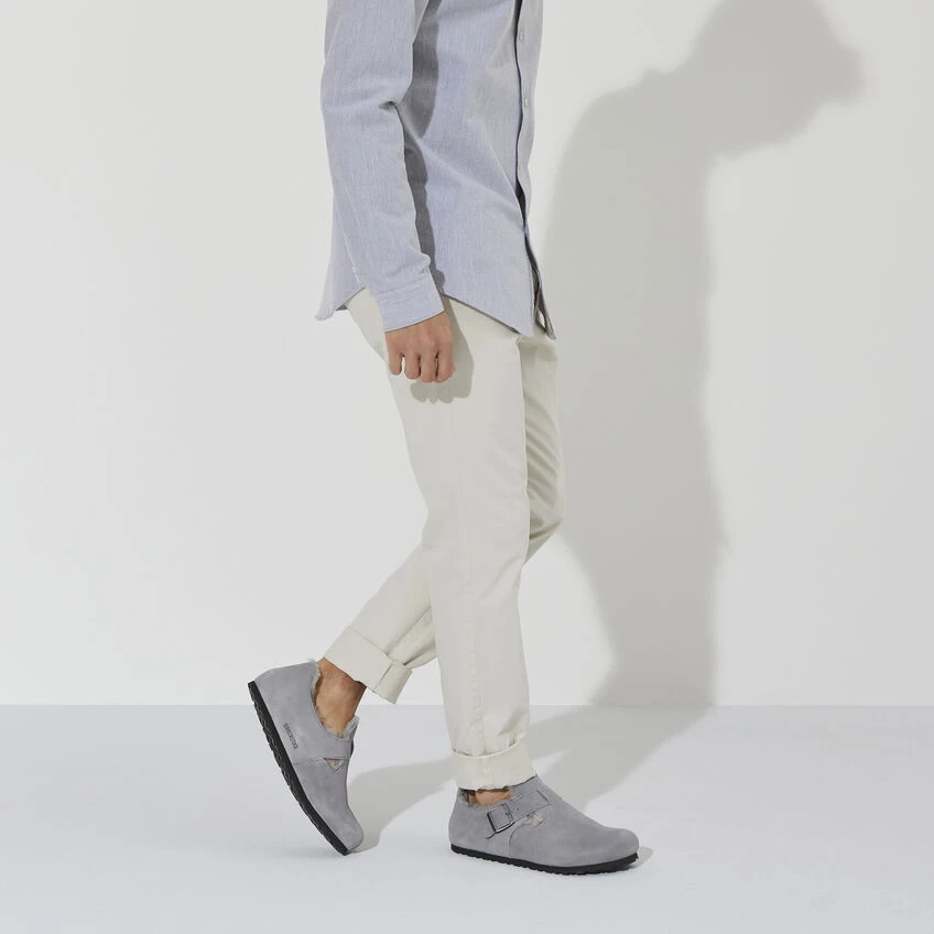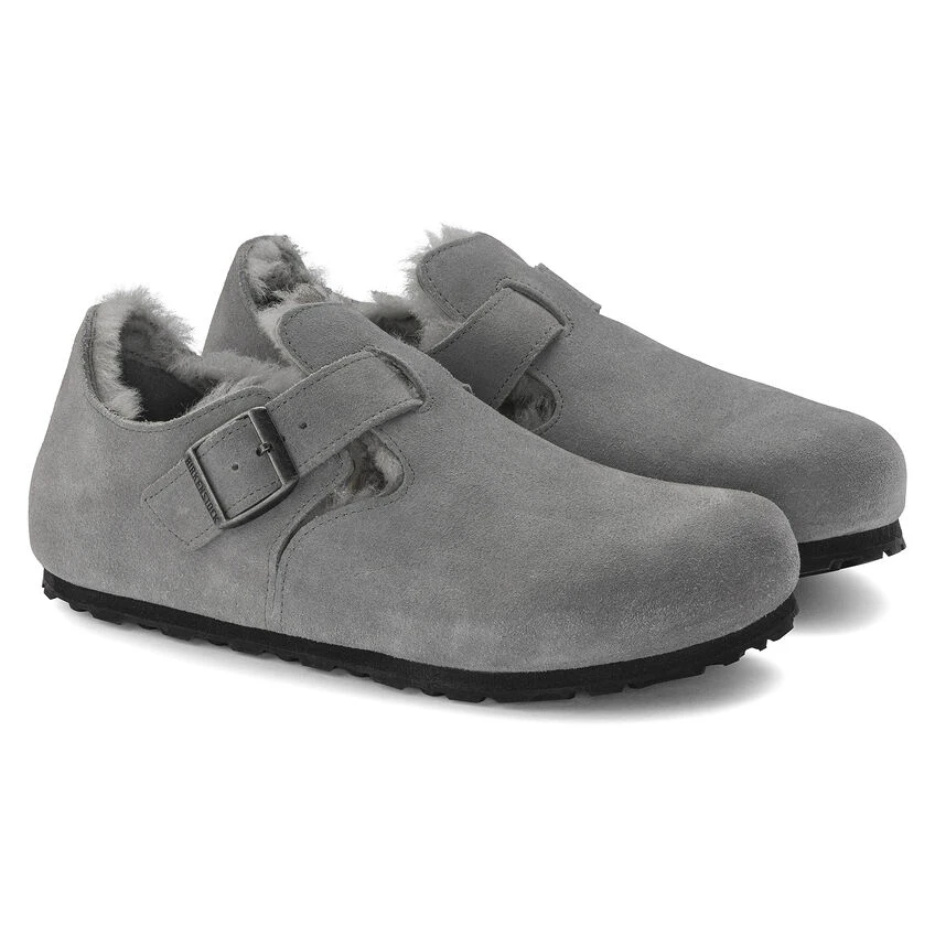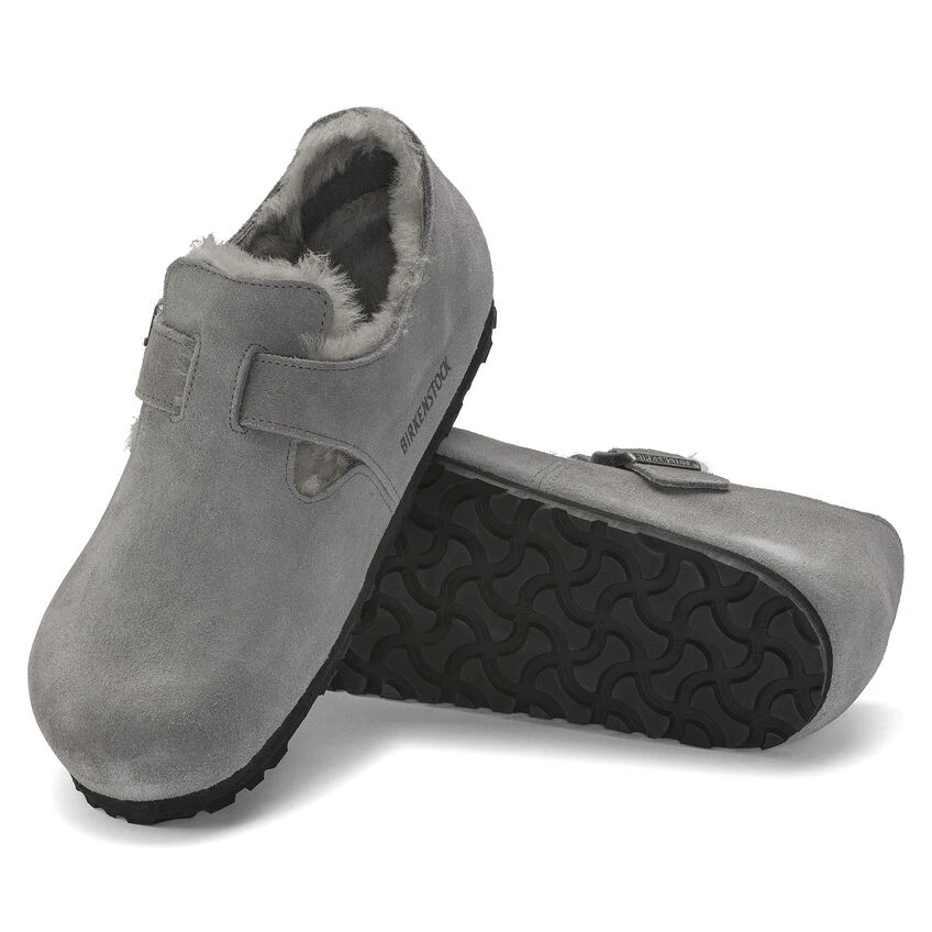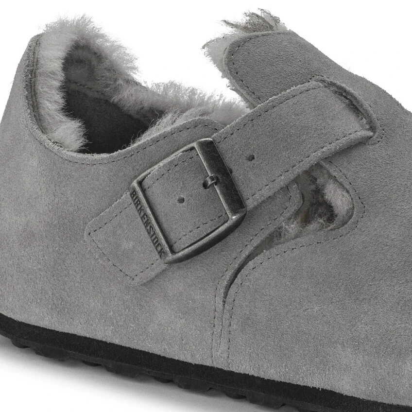 The BIRKENSTOCK London is perfectly simplistic with clean lines and an adjustable buckled strap. This version of the London features shearling for added warmth. The upper is made of incredibly soft suede.