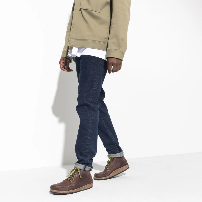 The BIRKENSTOCK Marton is a moccasin-style lace-up boot that’s instantly recognizable as an authentic BIRKENSTOCK original thanks to its exposed cork footbed. The striking stitching in combination with the subtle lacing adds to the overall design. The upper is made from extra thick, oiled nubuck leather with an open-selvage finish.