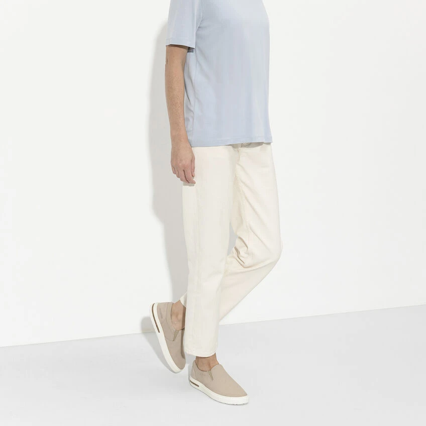 Meet the BIRKENSTOCK Oswego. The perfect casual slip-on shoe. With a flexible rubber sole and extra padding, stay comfortable all day long. Take these sporty shoes anywhere and everywhere. The upper is made from smooth canvas and soft suede.