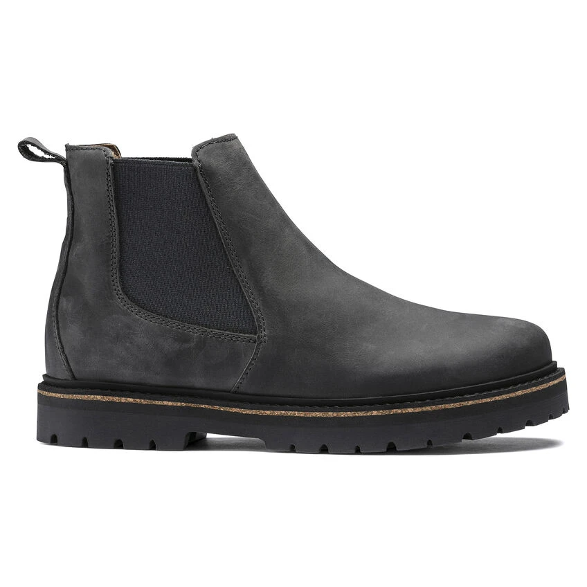 The Stalon from BIRKENSTOCK is a stylish, robust city boot. Featuring side elastic panels on the shaft, a loop at the back, and a rugged urban sole. The cork PU midsole makes for an instantly recognizable BIRKENSTOCK design. The upper is made from water-repellant oiled nubuck leather.