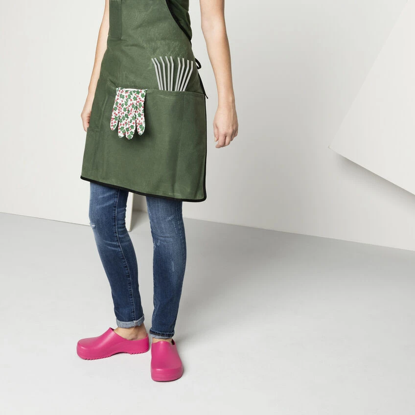 The wide array of colors that the Super Birki is available in makes it highly versatile for use in all sorts of occupational and private settings. This compact shoe made from water-resistant and dirt-repellent polyurethane is also oil- and grease-resistant. This extremely resilient material is washable at up to 60° Celsius and can be efficiently disinfected. Its resilience and its hygiene properties make it ideal for kitchens, medical environments, and the food industry – while it can equally serve as a practical garden clog. The anatomically shaped cork-latex footbed is lined with a moisture-wicking fabric. It can be removed for easy cleaning and is washable at up to 30° Celsius.