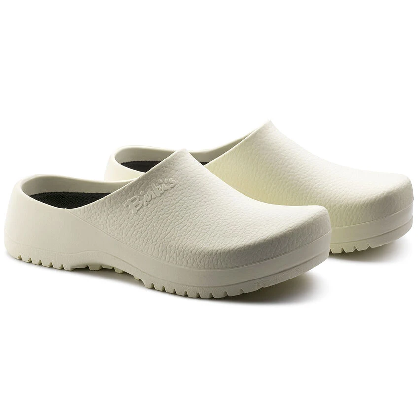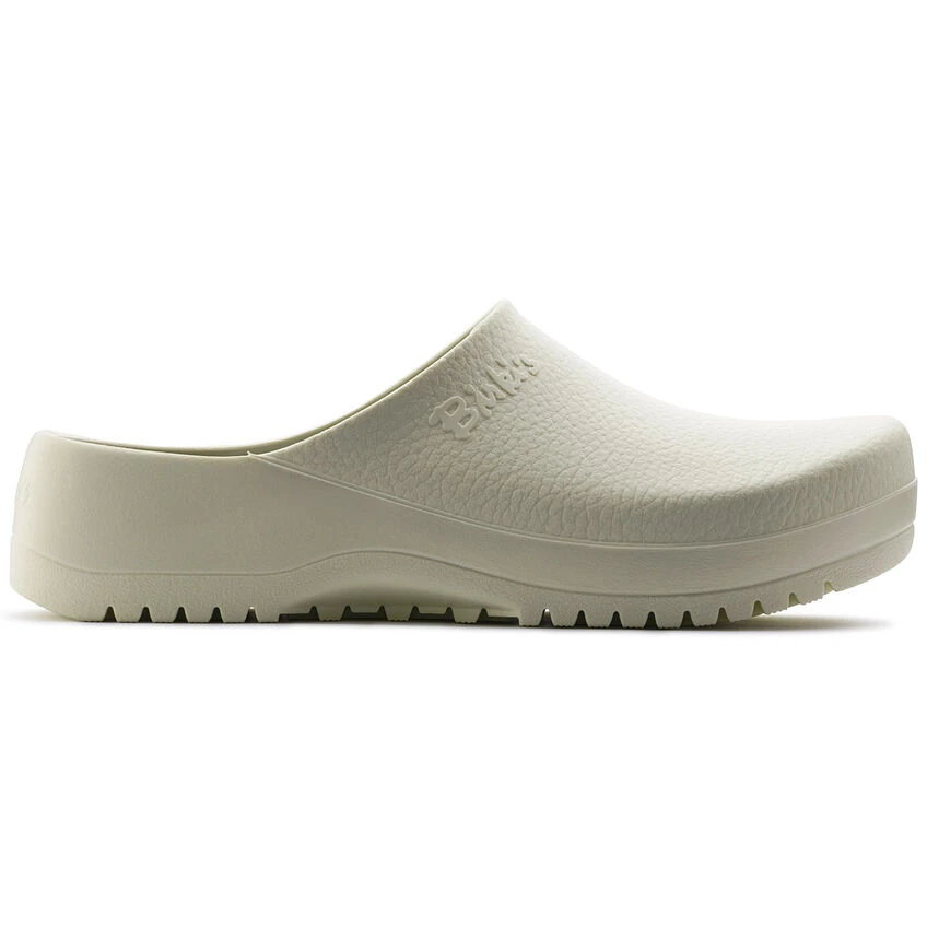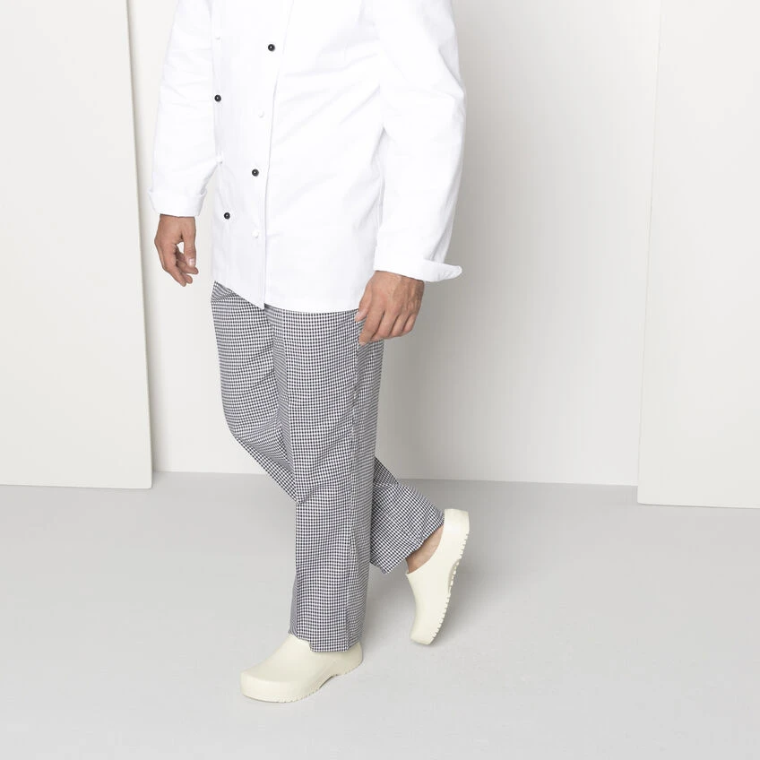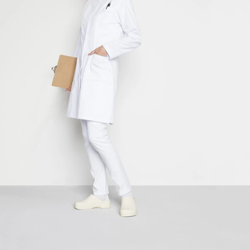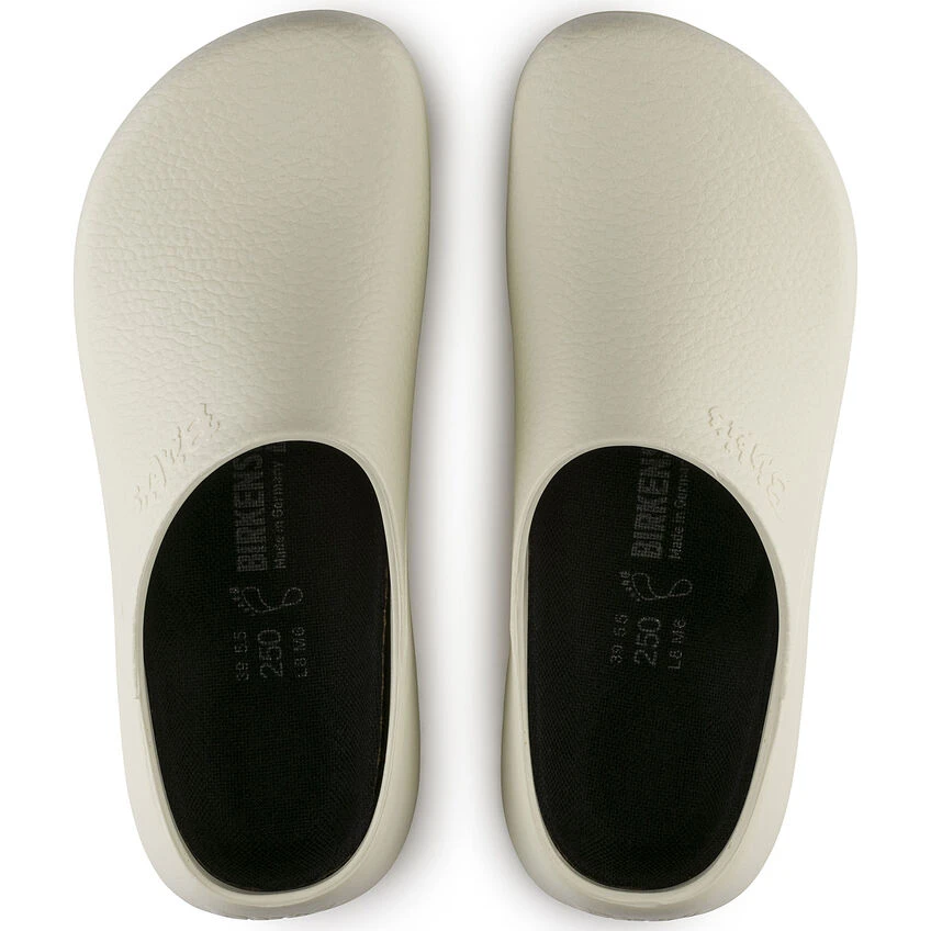 The wide array of colors that the Super Birki is available in makes it highly versatile for use in all sorts of occupational and private settings. This compact shoe made from water-resistant and dirt-repellent polyurethane is also oil- and grease-resistant. This extremely resilient material is washable at up to 60° Celsius and can be efficiently disinfected. Its resilience and its hygiene properties make it ideal for kitchens, medical environments, and the food industry – while it can equally serve as a practical garden clog. The anatomically shaped cork-latex footbed is lined with a moisture-wicking fabric. It can be removed for easy cleaning and is washable at up to 30° Celsius.